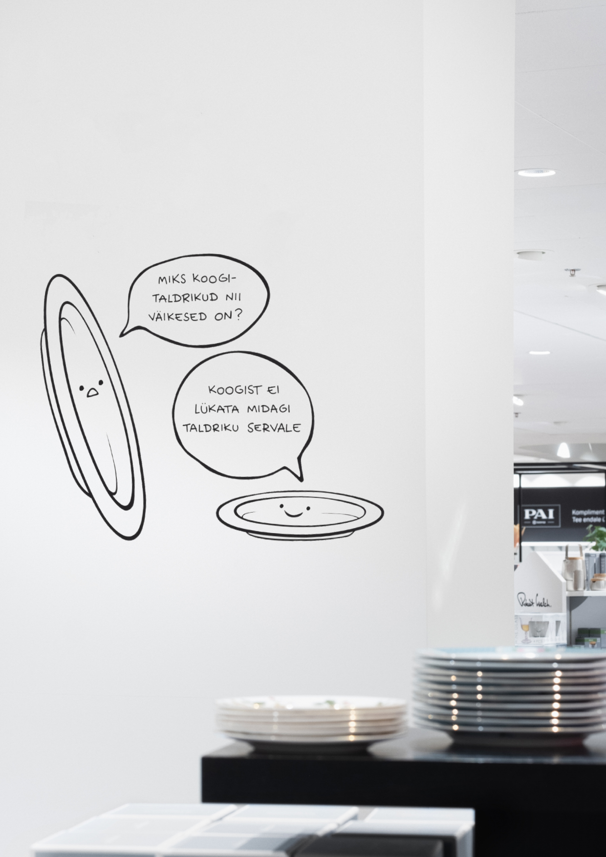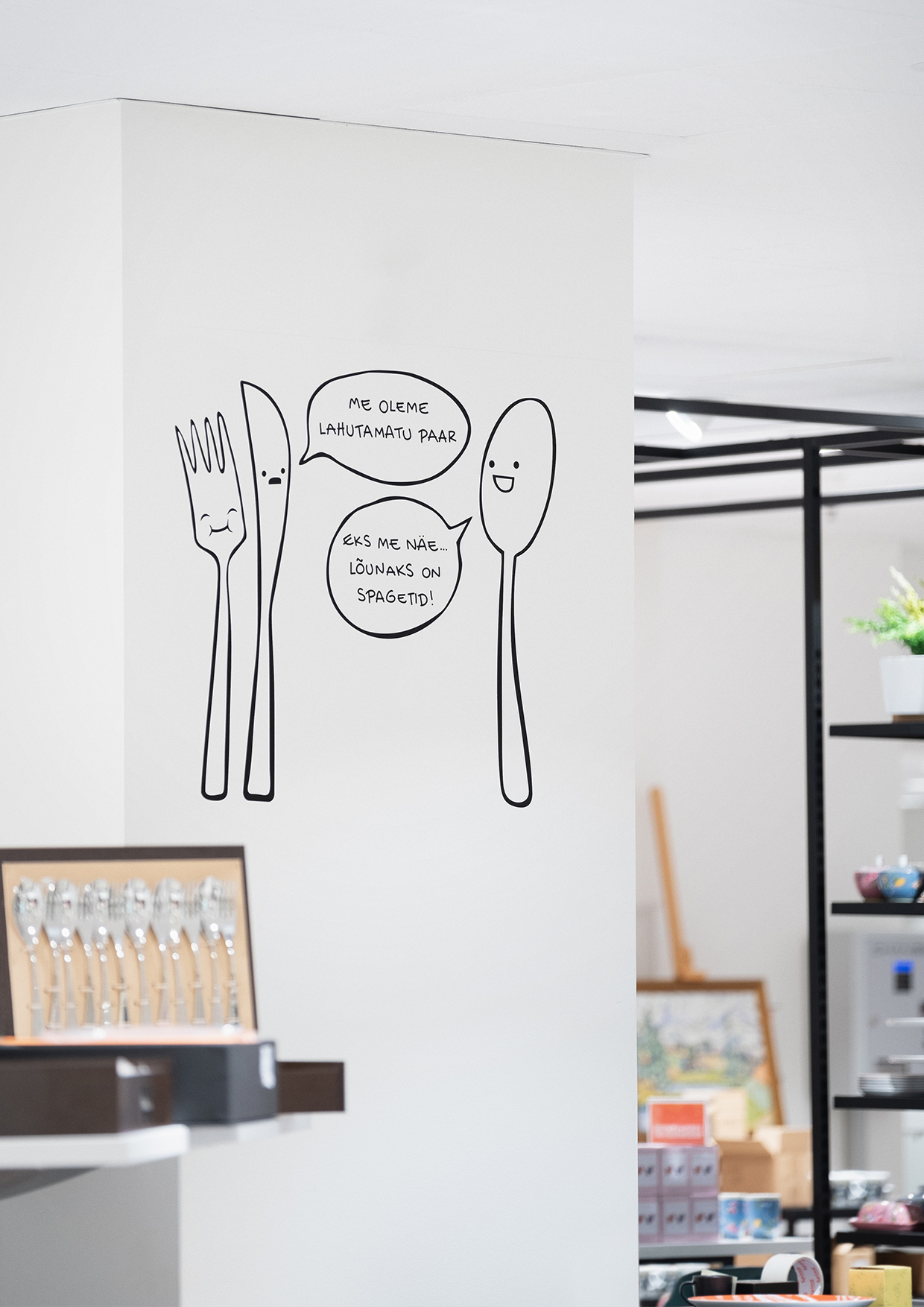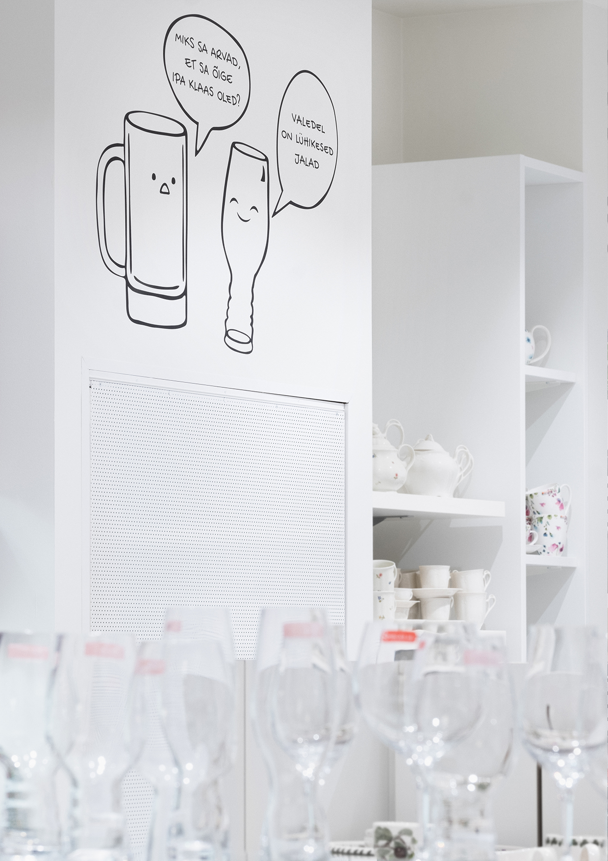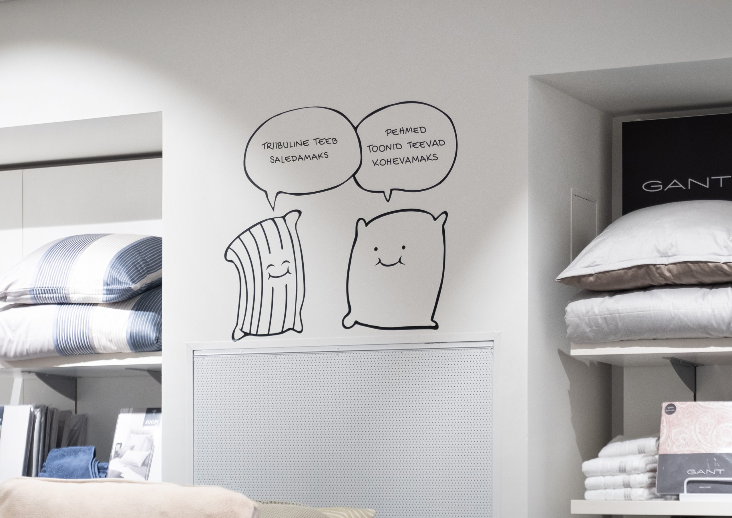 Kodumaailma kujundusprojekt hõlmas üle 20 fookusmaja ehk poeosakonna nime väljatöötamist koos visuaalse keelega. Uue ilme said esindusseinad, kus illustratsioonid hakkasid seintel elama tänu mati ja läikiva pinna vaheldumisele. Projekti mahtus ka kassatähtede kujundus ja ligi 20 toodete omavahelist humoorikat dialoogi, mis aitavad lõbusal moel toote omadusi külastajale tutvustada ja seeläbi sobivaim ostuotsus teha. Lisaks seinadele, ilmuvad illustratsioonid animeeritult ka ekraanidel.